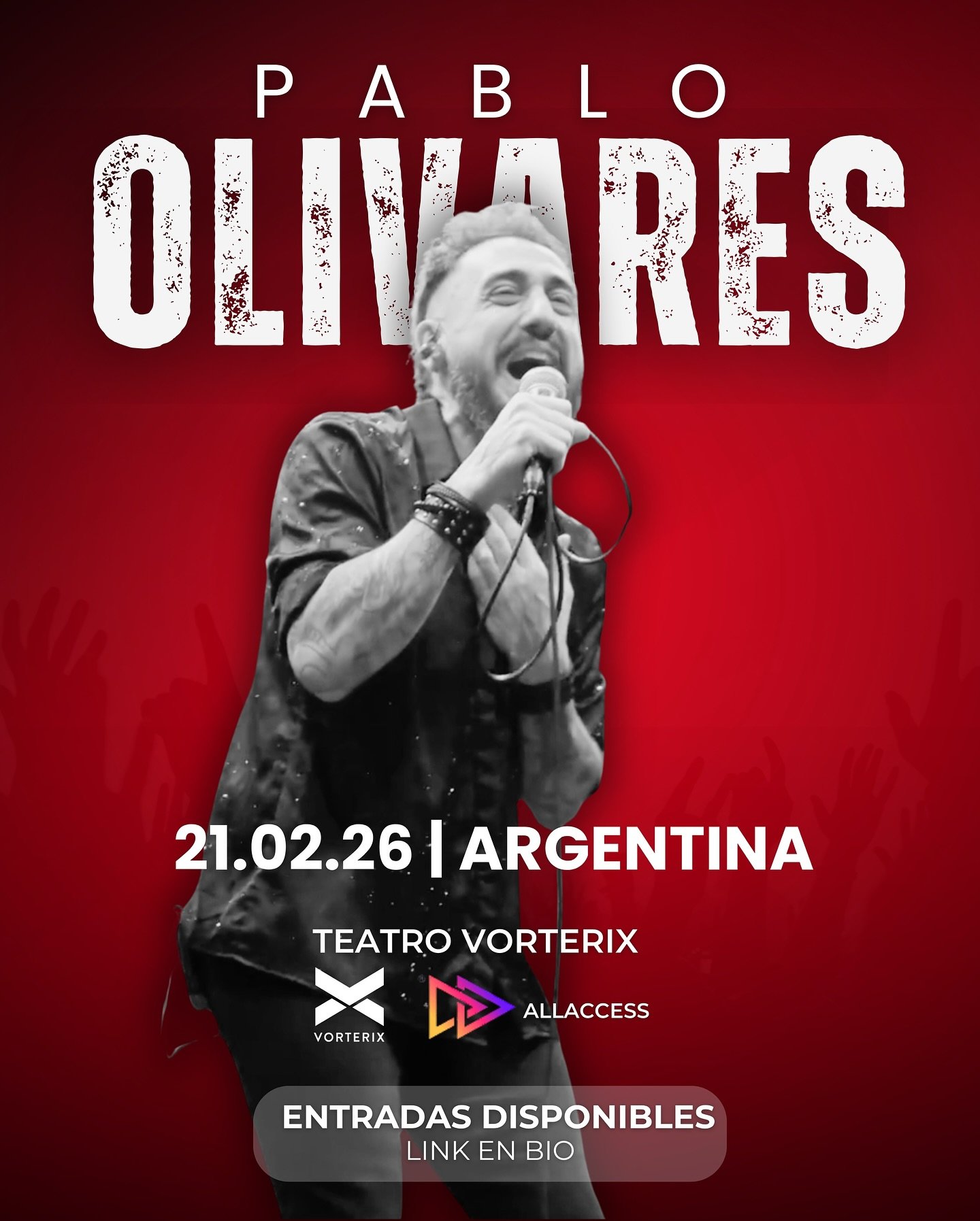 El músico argentino radicado en los Estados Unidos llega a la Argentina junto a toda su banda para brindar un show especial, repasando canciones de toda su trayectoria. Una noche para reencontrarse con su música, sus clásicos y nuevas versiones en un recital imperdible. 🔴 En el Teatro Vorterix. 📌 Av. Federico Lacroze 3455, CABA. Entradas en venta en allaccess.com.ar/event/pablo-olivares-en-argentina
