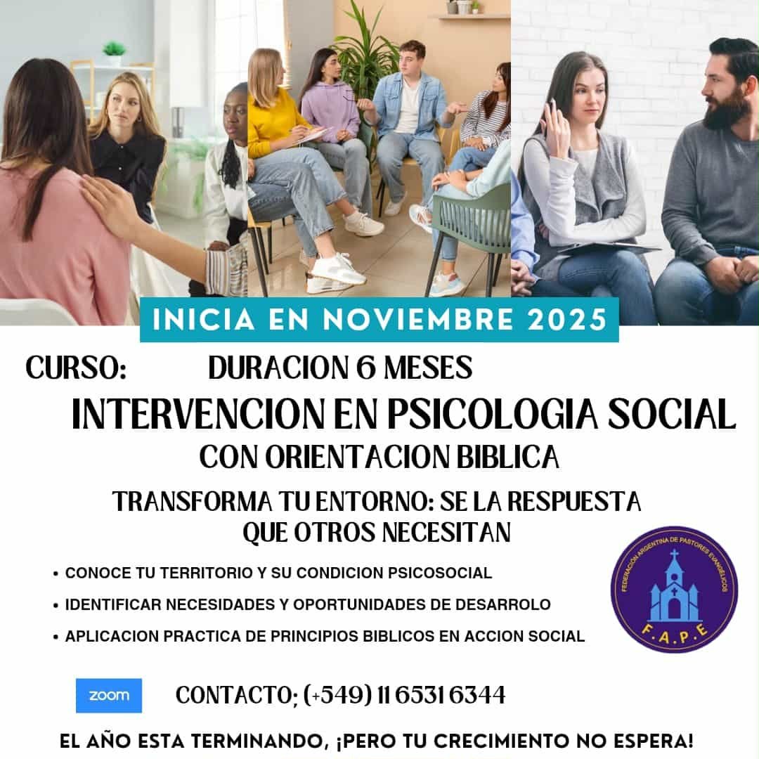 “Tranforma tu entorno: Se la respuesta que otros necesitan. Esta capacitación es abierta para todos los que desean capacitarse. 📅 INICIA en Noviembre 2025. Duración 6 Meses. ℹ️ Invita: FAPE Federación Argentina de Pastores Evangélicos. 👉 Informes: + 54 9 11 6531-6344 | facebook.com/federacionargentinadepastoresevangelicos