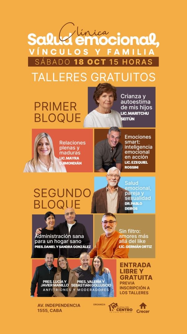Te invitamos a un encuentro especial. Será una tarde para reflexionar, sanar y crecer juntos. ℹ️ Con la presencia de la Lic. Maritchu Seitún, Lic. Mayra Djimondián, ic. Ezequiel Rossini, Dr. Pablo Deiros, Pres Daniel y Sandra González, Lic. Germán Ortíz y Anfitriones y Moderadores: Pres. Lucía y Javier Manillo y Pres Valeria y Sebastián Golluscio. 🔴 En la Iglesia Del Centro. 📌 Av. Independencia 1555, CABA. 🕒 A las 15hs. 👉 Informes: app.iglesiadelcentro.org | facebook.com/idcentro |.instagram.com/idcentro