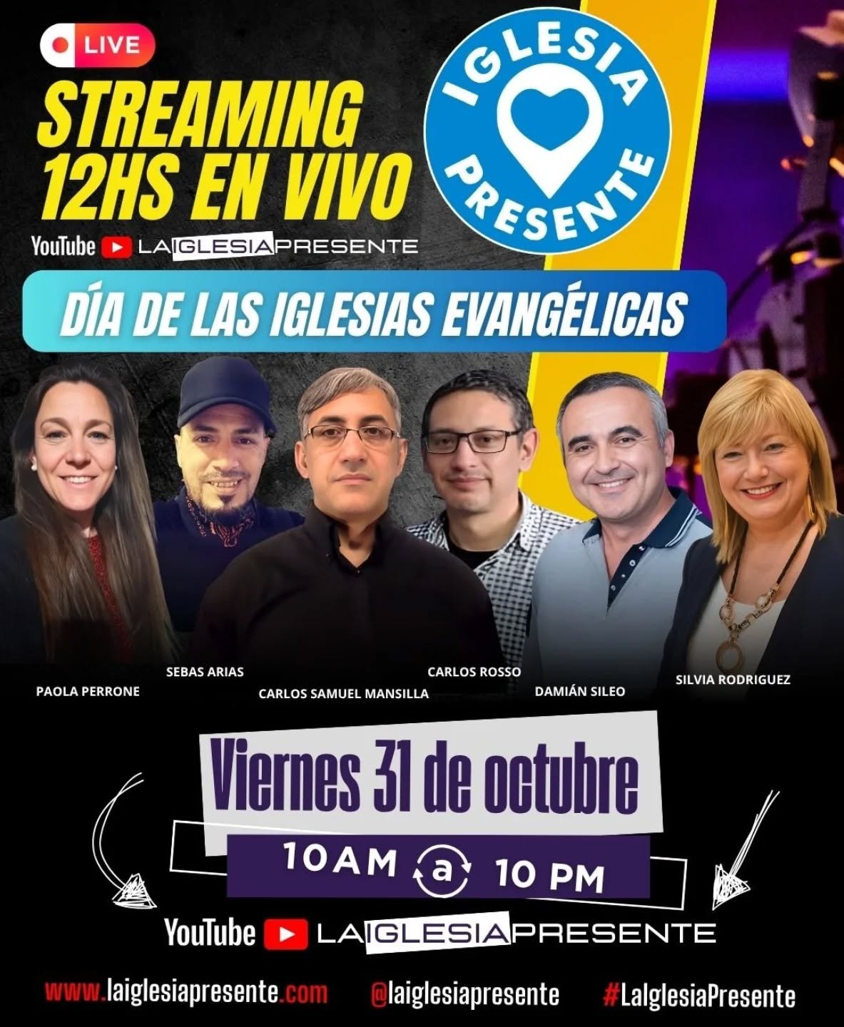 🔥 Iglesia Presente. 🔥 Es tiempo de velebrar el nombre de Jesús, hoy nace un nuevo día. En Argentina la nación salta de gozo y alegría. Evangélicos y Protestantes celebran nuestro día. La Iglesia se hace presente donde estés entra en acción. En toda la Argentina crece. 👉 Por www.youtube.com/@laIglesiaPresente 🕒 De las 10 AM a 10 PM. 👉 Informes: hlaiglesiapresente.com | instagram.com/laiglesiapresente | facebook.com/Iglesia