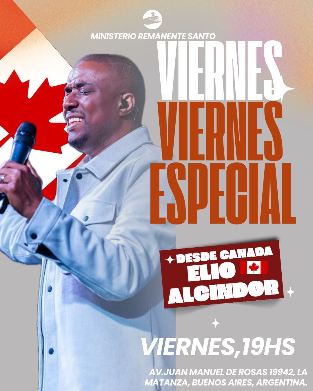 Ganador de múltiples premios, el Cantautor, Adorador, quien reside en Canadá, es un artista que ha estado sirviendo al Señor a través de su ministerio de adoración y alabanza, ministrando y grabando sus temas musicales en diferentes idiomas incluyendo Español, Francés, Inglés entre otros. 🔴 En el Ministerio Remanente Santo, 📌 Av. Juan Manuel de Rosas 19942, La Matanza, Bs. As. 🕗 A las 19hs. 👉 Informes: elioalcindor.com | instagram.com/elioalcindor | facebook.com/elioalcindor