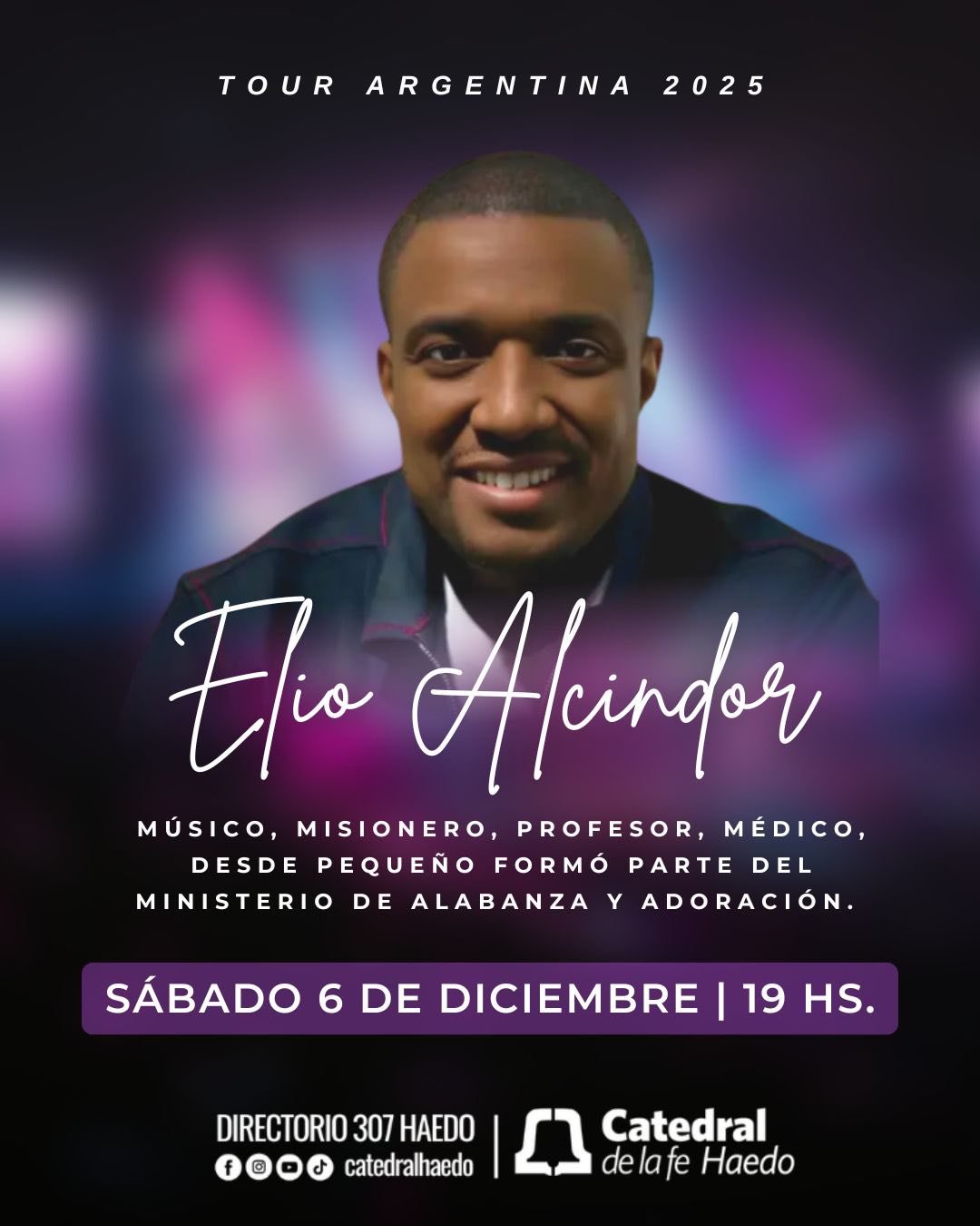 ℹ️ Ganador de múltiples premios, el Cantautor, Adorador, quien reside en Canadá, es un artista que ha estado sirviendo al Señor a través de su ministerio de adoración y alabanza, ministrando y grabando sus temas musicales en diferentes idiomas incluyendo Español, Francés, Inglés entre otros. 🔴 En Catedral de la Fe Haedo, 📌 Directorio 307, Ciudadela, Bs. As. 🕗 A las 19hs. 👉 Informes: elioalcindor.com | instagram.com/elioalcindor | facebook.com/elioalcindor