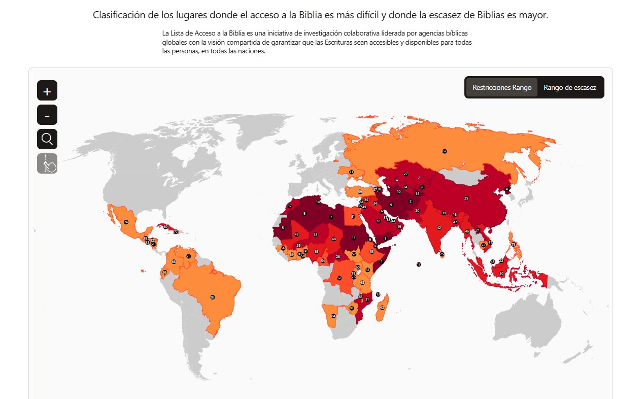 La Iniciativa de Acceso a la Biblia, fundada por Puertas Abiertas Internacional y la Sociedad Bíblica Digital, publicó recientemente los resultados de su «Lista de Acceso a la Biblia». El proyecto examina las restricciones al acceso a la Biblia en 88 países debido a problemas como la persecución, las altas tasas de analfabetismo, las limitaciones de impresión o la falta de recursos económicos.