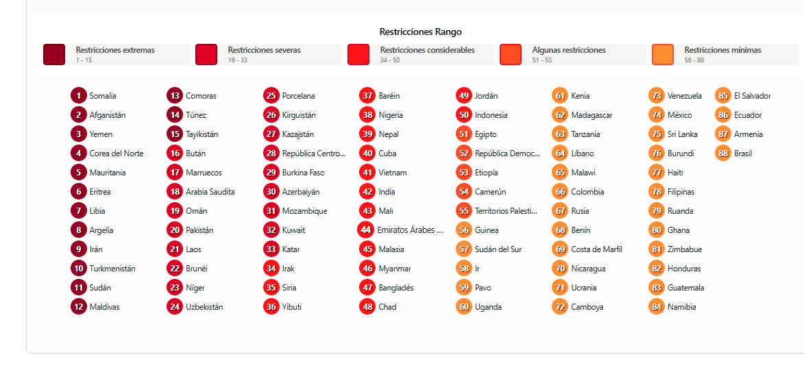 En el último lugar de la lista, en el puesto 88, se encuentra Brasil, un país sudamericano de mayoría cristiana que, según los investigadores, tiene dificultades para acceder a la Biblia en ciertas zonas del país debido a la «pobreza extrema.