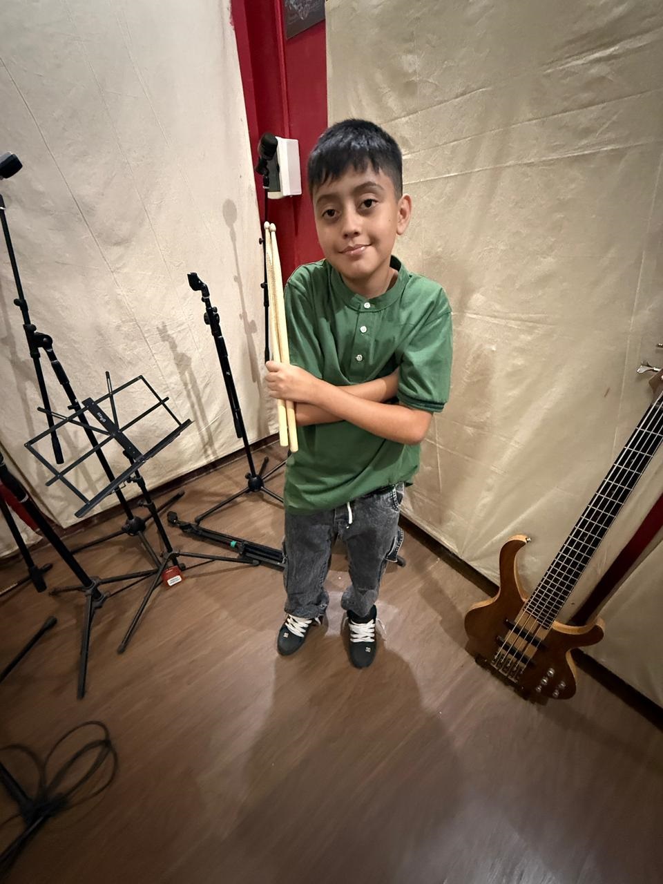 Después se sumó nuestro hermano Bautista, que con solo 7 años sintió ese deseo de ser parte. Empezó con sus clases, a meterse en la música, y hoy, con casi 12 años, es el baterista oficial de la banda. Es una locura ver cómo Dios fue armando todo.
