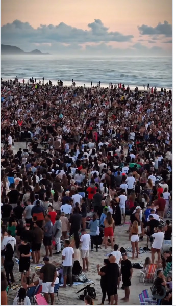 Registros difundidos en Instagram confirman la participación de cerca de cinco mil personas. En las publicaciones se describe que «más de cinco mil personas se congregaron» en la Praia do Campeche y transformaron el lugar en un espacio de adoración colectiva.
