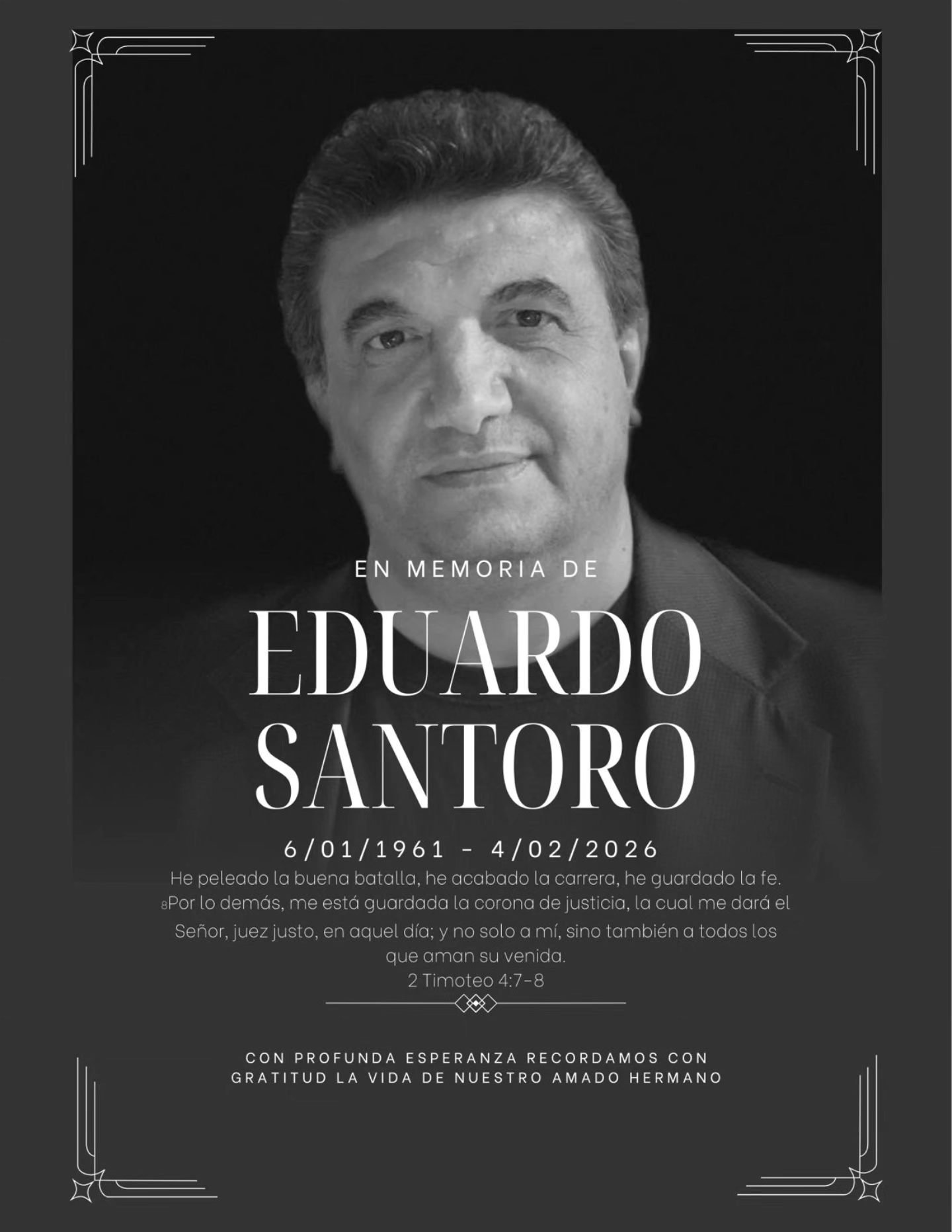 Desde su cuenta de Instagram expresaron: «Con tristeza en nuestro corazón pero con profunda esperanza en nuestro Señor compartimos la partida de nuestro amado Eduardo Santoro. Un hombre de fe que vivió hasta el último aliento el evangelio y la esperanza de Cristo».